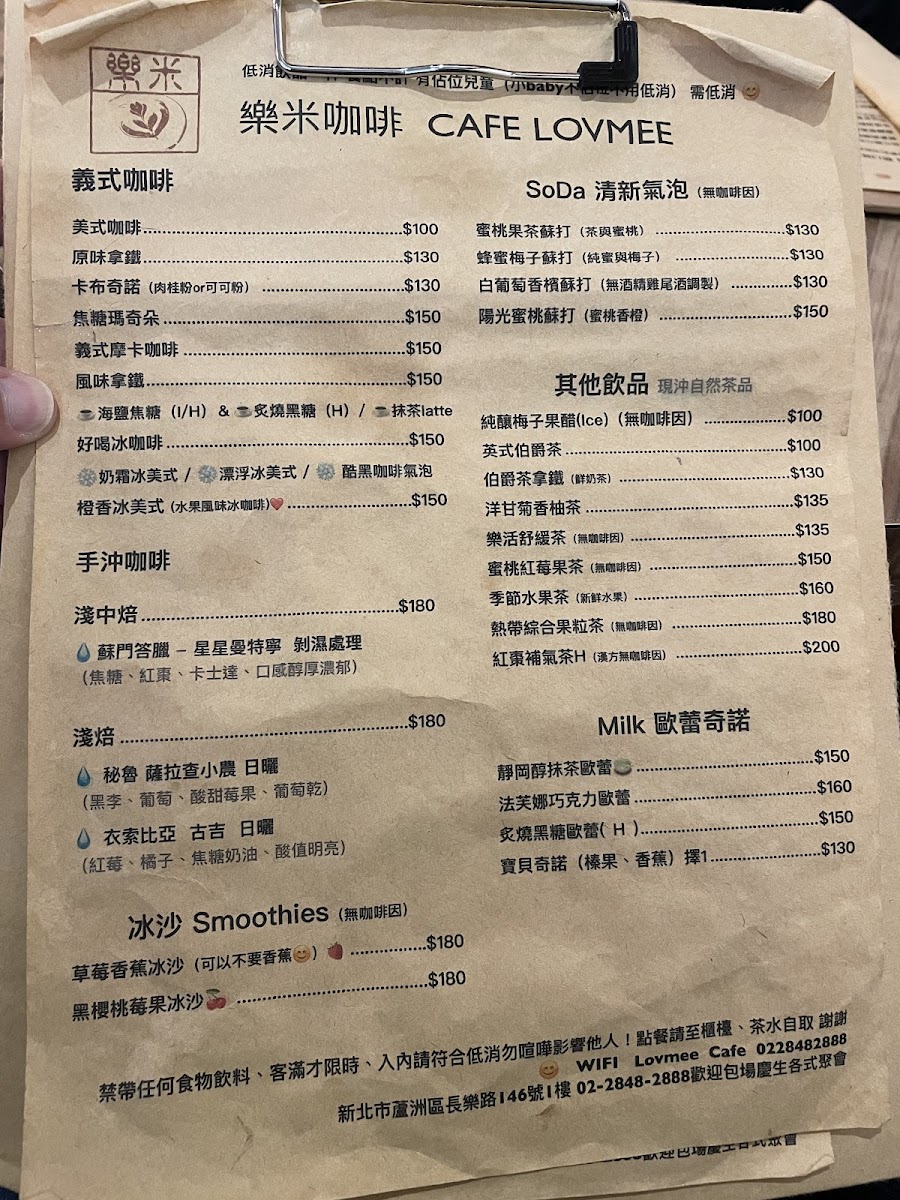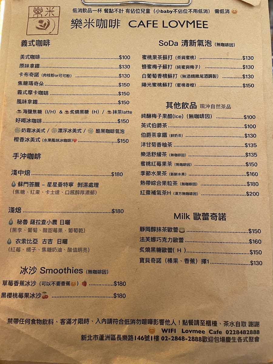 Welcome to 樂米咖啡Lovmee Cafe, a delightful haven nestled in Luzhou District, New Taipei City. Renowned for its warm atmosphere and exceptional hospitality, Lovmee Cafe specializes in handcrafted desserts and expertly brewed coffee. The menu features mouthwatering selections, including their signature Tiramisu and rich Kenyan AA coffee with unique flavors of dried plums and black currants, enticing taste buds for only NT$240. For a comforting afternoon treat, try their black sugar latte—highly praised for its smoothness.